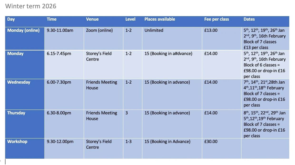 Due to the rising costs associated with room hire and other expenses, I will need to raise the price by £1.00 per class starting from this block. I have maintained the same class rates since 2022 and have done my best to avoid any increases until now.